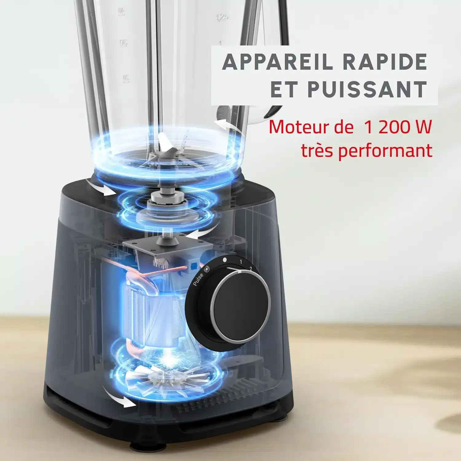 Ce blender est également équipé d’un système de refroidissement par air innovant. Ce mécanisme prolonge la durée de vie du moteur en évitant la surchauffe, même lors d’utilisations prolongées. Il s’agit d’un atout majeur pour garantir des performances constantes au fil du temps.